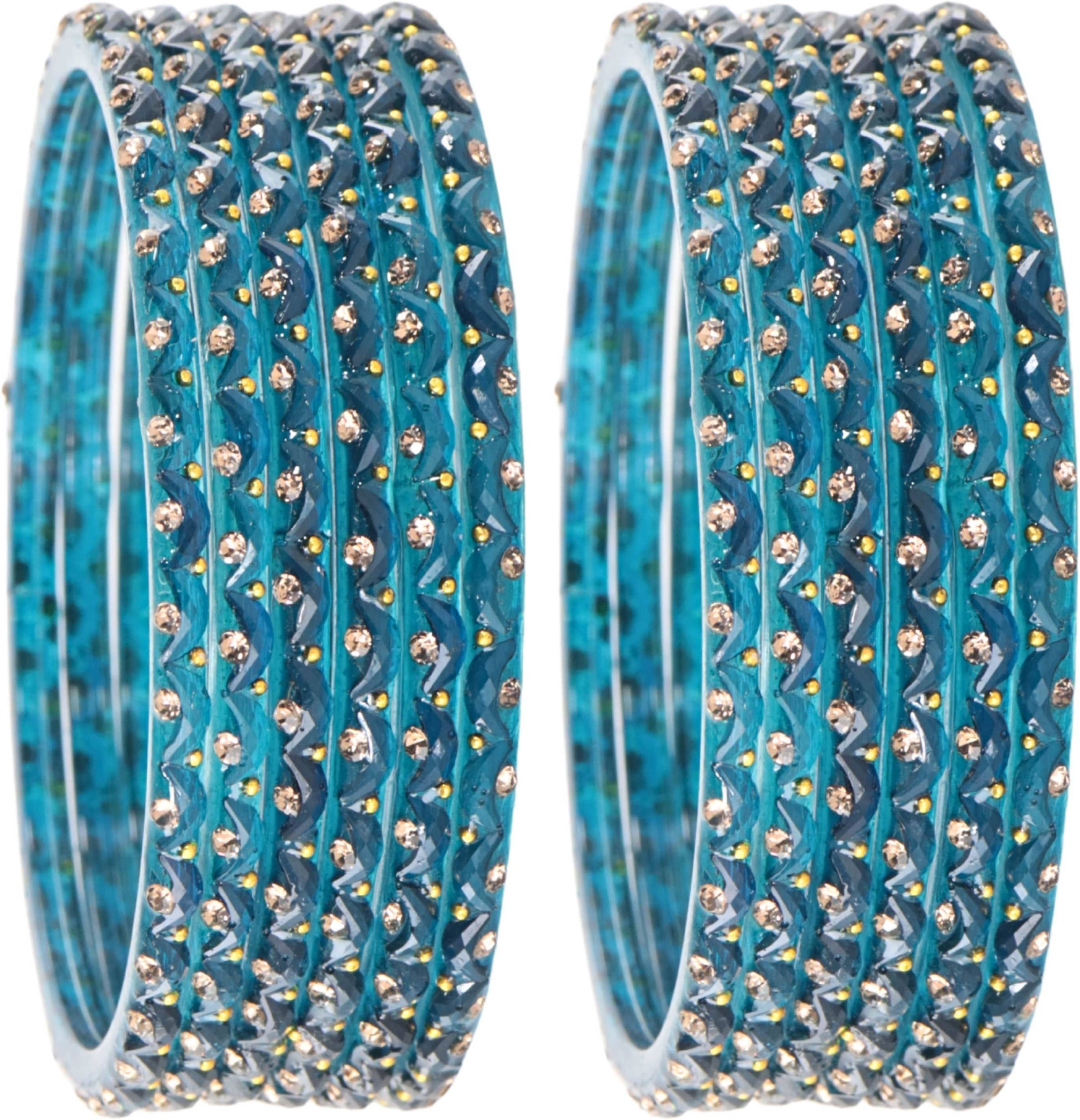 STYOLLO by LAVAZZA Stylish Designer Glass Bangles Set For Women & Girls, Studded With Zircon Stones, Golden Pearls & Chand Shape Design, Is A Premium-Quality Ethnic Bangle Set Perfect For Weddings, Festivals, Parties, And Everyday Wear, Crafted With Durable Glass And Intricate Detailing To Complement Sarees, Lehengas, Salwar Suits, And Indo-Western Outfits, While Also Making An Ideal Gift For Raksha Bandhan, Diwali, Karwa Chauth, Birthdays, Anniversaries, And Other Festive Occasions; These Trendy, Lightweight, And Elegant Glass Bangles Reflect Fine Craftsmanship, Ensuring A Comfortable Fit And Long-Lasting Shine When Handled With Care-Store In A Soft Pouch Or Box, Avoid Contact With Water, Perfumes, And Harsh Chemicals, And Gently Clean With A Soft Cloth To Maintain Their Beauty; STYOLLO By Lavazza Combines Traditional Charm With Modern Style At An Affordable Price, Making This Bangle Set A Must-Have Accessory For Women Who Love Ethnic Jewelry, Party Wear Bangles, Designer Bangles, And Fashion Bangles, Helping You Stand Out In Elegance And Grace.