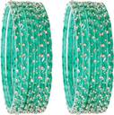 STYOLLO by LAVAZZA Stylish Glass Bangles Set With Golden Beads & Zircon Stones, Perfect For Weddings, Festivals, Parties, And Daily Wear
