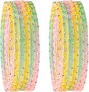 STYOLLO Stylish Glass Bangles Set With Golden Beads & Zircon Stones, Perfect For Weddings, Festivals, Parties, And Daily Wear