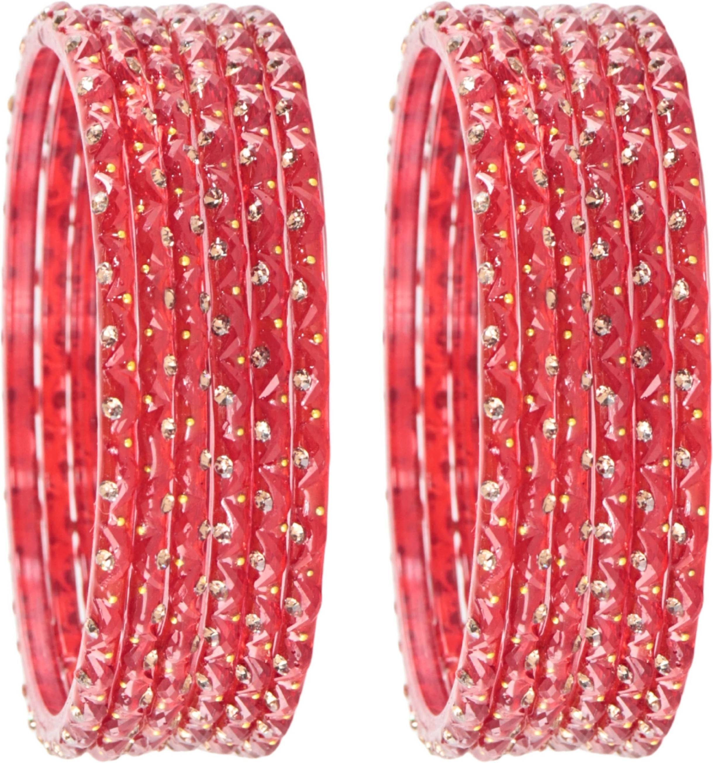 STYOLLO by LAVAZZA Stylish Designer Glass Bangles Set For Women & Girls, Studded With Zircon Stones, Golden Pearls & Chand Shape Design, Is A Premium-Quality Ethnic Bangle Set Perfect For Weddings, Festivals, Parties, And Everyday Wear, Crafted With Durable Glass And Intricate Detailing To Complement Sarees, Lehengas, Salwar Suits, And Indo-Western Outfits, While Also Making An Ideal Gift For Raksha Bandhan, Diwali, Karwa Chauth, Birthdays, Anniversaries, And Other Festive Occasions; These Trendy, Lightweight, And Elegant Glass Bangles Reflect Fine Craftsmanship, Ensuring A Comfortable Fit And Long-Lasting Shine When Handled With Care-Store In A Soft Pouch Or Box, Avoid Contact With Water, Perfumes, And Harsh Chemicals, And Gently Clean With A Soft Cloth To Maintain Their Beauty; STYOLLO By Lavazza Combines Traditional Charm With Modern Style At An Affordable Price, Making This Bangle Set A Must-Have Accessory For Women Who Love Ethnic Jewelry, Party Wear Bangles, Designer Bangles, And Fashion Bangles, Helping You Stand Out In Elegance And Grace.
