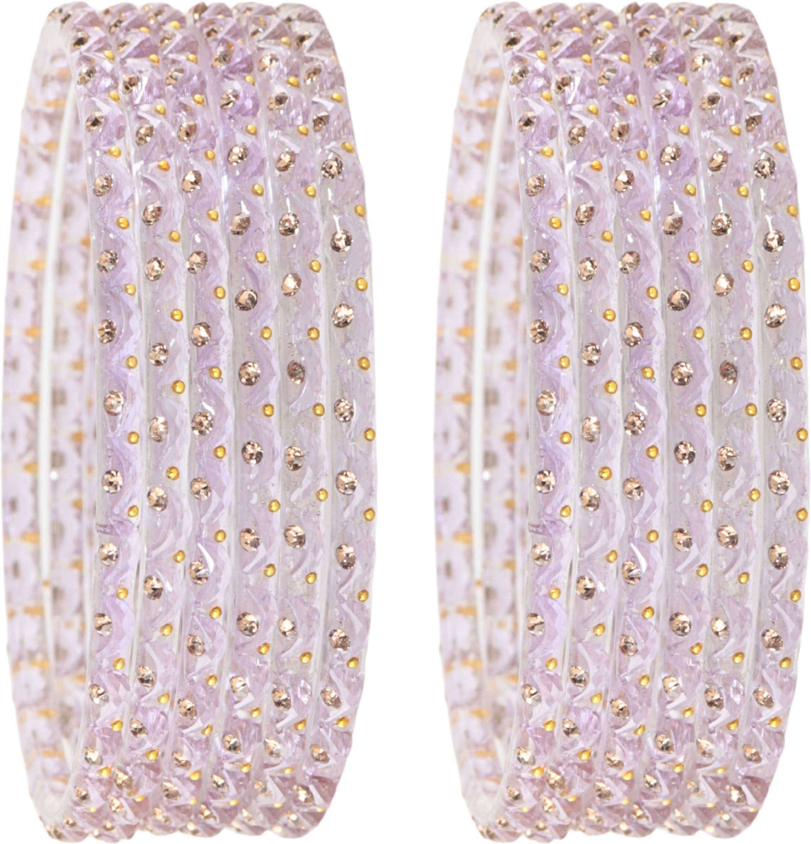 STYOLLO by LAVAZZA Stylish Designer Glass Bangles Set For Women & Girls, Studded With Zircon Stones, Golden Pearls & Chand Shape Design, Is A Premium-Quality Ethnic Bangle Set Perfect For Weddings, Festivals, Parties, And Everyday Wear, Crafted With Durable Glass And Intricate Detailing To Complement Sarees, Lehengas, Salwar Suits, And Indo-Western Outfits, While Also Making An Ideal Gift For Raksha Bandhan, Diwali, Karwa Chauth, Birthdays, Anniversaries, And Other Festive Occasions; These Trendy, Lightweight, And Elegant Glass Bangles Reflect Fine Craftsmanship, Ensuring A Comfortable Fit And Long-Lasting Shine When Handled With Care-Store In A Soft Pouch Or Box, Avoid Contact With Water, Perfumes, And Harsh Chemicals, And Gently Clean With A Soft Cloth To Maintain Their Beauty; STYOLLO By Lavazza Combines Traditional Charm With Modern Style At An Affordable Price, Making This Bangle Set A Must-Have Accessory For Women Who Love Ethnic Jewelry, Party Wear Bangles, Designer Bangles, And Fashion Bangles, Helping You Stand Out In Elegance And Grace.