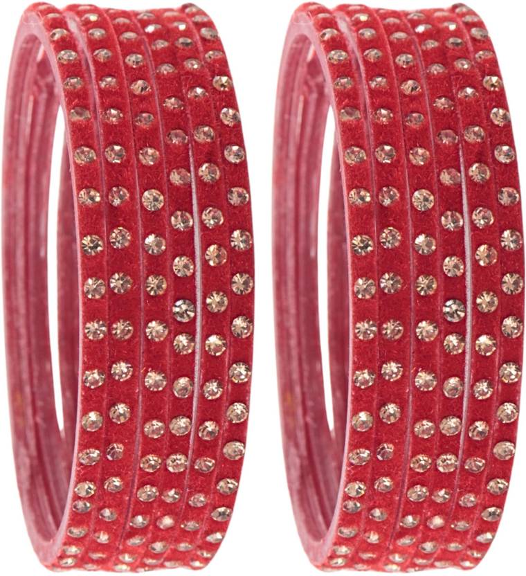 STYOLLO Premium Glass Velvet Bangles Set For Women And Girls Is A Beautifully Handcrafted Collection Made From High-Quality Transparent Glass, Embellished With Golden Zircon Stones And Delicate Beadwork, Offering A Perfect Blend Of Modern Style And Traditional Charm That Makes It An Ideal Choice For Weddings, Parties, Karva Chauth, Festivals, Anniversaries, Engagements, Special Occasions, And Even Daily Wear, With Vibrant Colors Symbolizing Love, Passion, And New Beginnings To Make You Shine On Your Special Day, Featuring A Premium Finish, Smooth Edges, And Intricate Detailing That Reflect STYOLLO's Expert Craftsmanship, Ensuring Durability, Comfort, And Long-Lasting Shine, While Its Versatile Design Allows It To Complement A Wide Range Of Outfits Including Sarees, Lehengas, Suits, And Modern Ensembles, Making It A Thoughtful Gift For Brides, Bridesmaids, Friends, And Loved Ones; STYOLLO Is Committed To Delivering Timeless Style And Elegance Through Its Wide Collection Of Glass Bangles, Metal Bangles, Acrylic Bangles, Chuda Sets, Kaleera Latkan Sets, Kadas, Bracelets, And Other Jewelry Pieces For Women And Girls, Keeping Tradition Alive While Embracing Contemporary Fashion, And To Maintain The Longevity Of Your Bangle Set, Simply Clean It With A Smooth Cotton Cloth, Avoid Direct Contact With Water, Perfumes, Deodorants, Sunlight, And Harsh Chemicals, And Store Safely In An Airtight Zip-Lock Pouch To Preserve Its Shine And Quality, Making This Bangle Set Not Just An Accessory But A Memorable Addition To Your Jewelry Collection That Elevates Your Overall Look And Creates Lasting Memories Every Time You Wear It