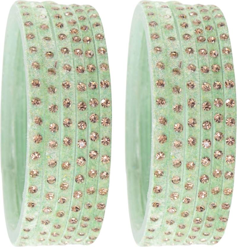 STYOLLO By LAVAZZA Fancy Stylish Velvet Glass Bangles Set With Golden Zircon Gemstone