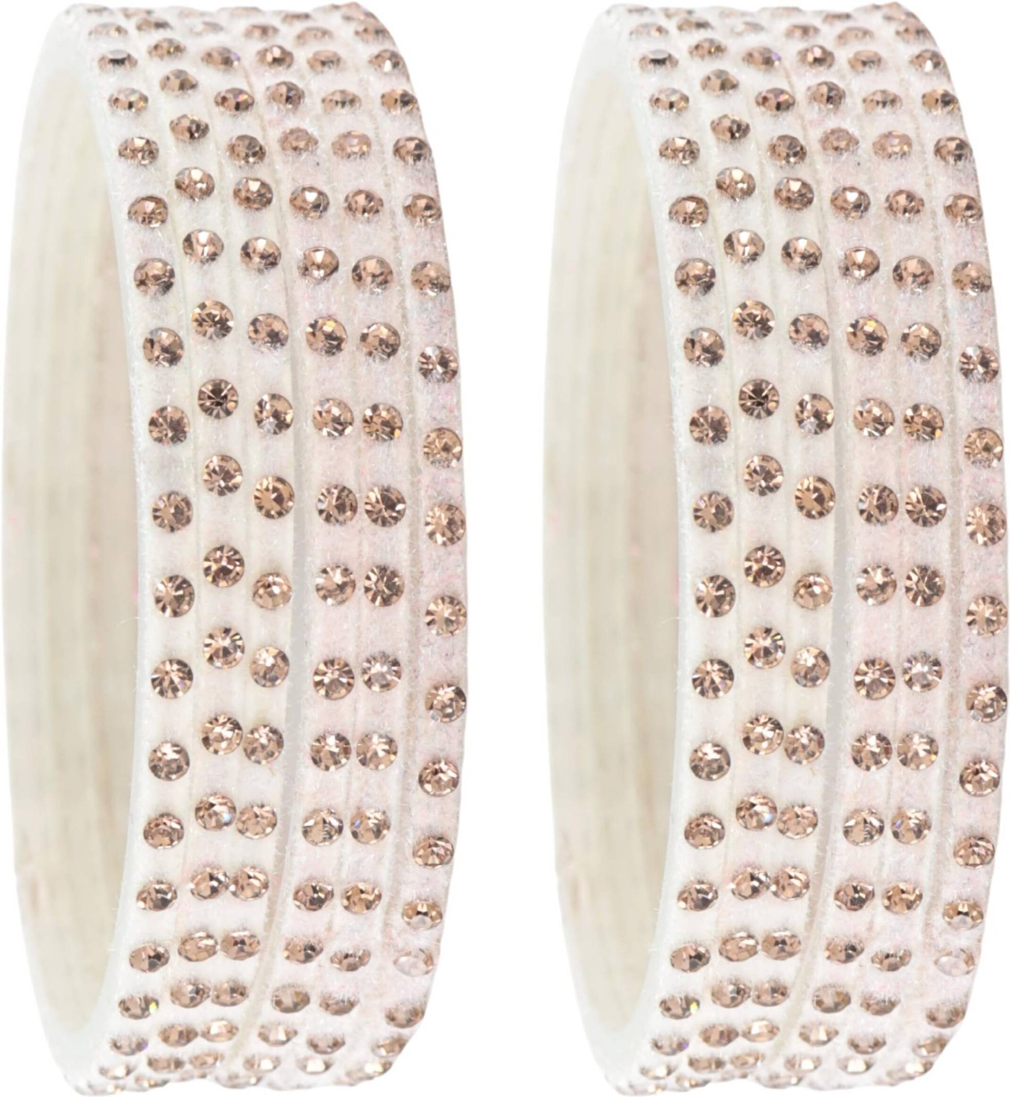STYOLLO by Premium Glass Velvet Bangles Set For Women And Girls Is A Beautifully Handcrafted Collection Made From High-Quality Transparent Glass, Embellished With Golden Zircon Stones And Delicate Beadwork, Offering A Perfect Blend Of Modern Style And Traditional Charm That Makes It An Ideal Choice For Weddings, Parties, Karva Chauth, Festivals, Anniversaries, Engagements, Special Occasions, And Even Daily Wear, With Vibrant Colors Symbolizing Love, Passion, And New Beginnings To Make You Shine On Your Special Day, Featuring A Premium Finish, Smooth Edges, And Intricate Detailing That Reflect STYOLLO's Expert Craftsmanship, Ensuring Durability, Comfort, And Long-Lasting Shine, While Its Versatile Design Allows It To Complement A Wide Range Of Outfits Including Sarees, Lehengas, Suits, And Modern Ensembles, Making It A Thoughtful Gift For Brides, Bridesmaids, Friends, And Loved Ones; STYOLLO Is Committed To Delivering Timeless Style And Elegance Through Its Wide Collection Of Glass Bangles, Metal Bangles, Acrylic Bangles, Chuda Sets, Kaleera Latkan Sets, Kadas, Bracelets, And Other Jewelry Pieces For Women And Girls, Keeping Tradition Alive While Embracing Contemporary Fashion, And To Maintain The Longevity Of Your Bangle Set, Simply Clean It With A Smooth Cotton Cloth, Avoid Direct Contact With Water, Perfumes, Deodorants, Sunlight, And Harsh Chemicals, And Store Safely In An Airtight Zip-Lock Pouch To Preserve Its Shine And Quality, Making This Bangle Set Not Just An Accessory But A Memorable Addition To Your Jewelry Collection That Elevates Your Overall Look And Creates Lasting Memories Every Time You Wear It