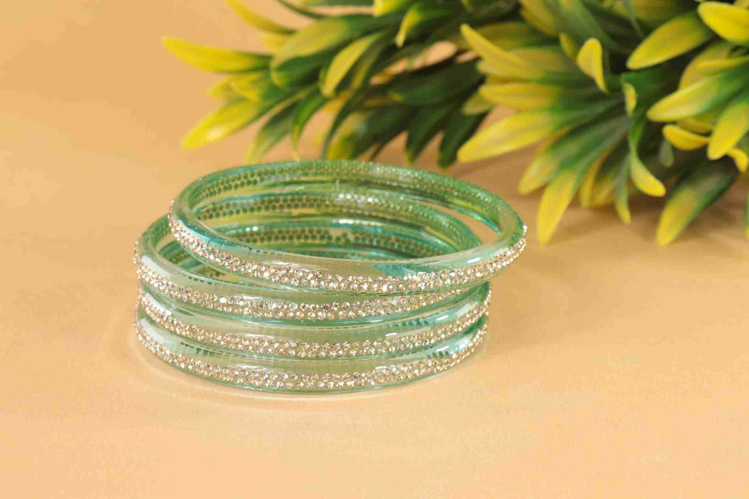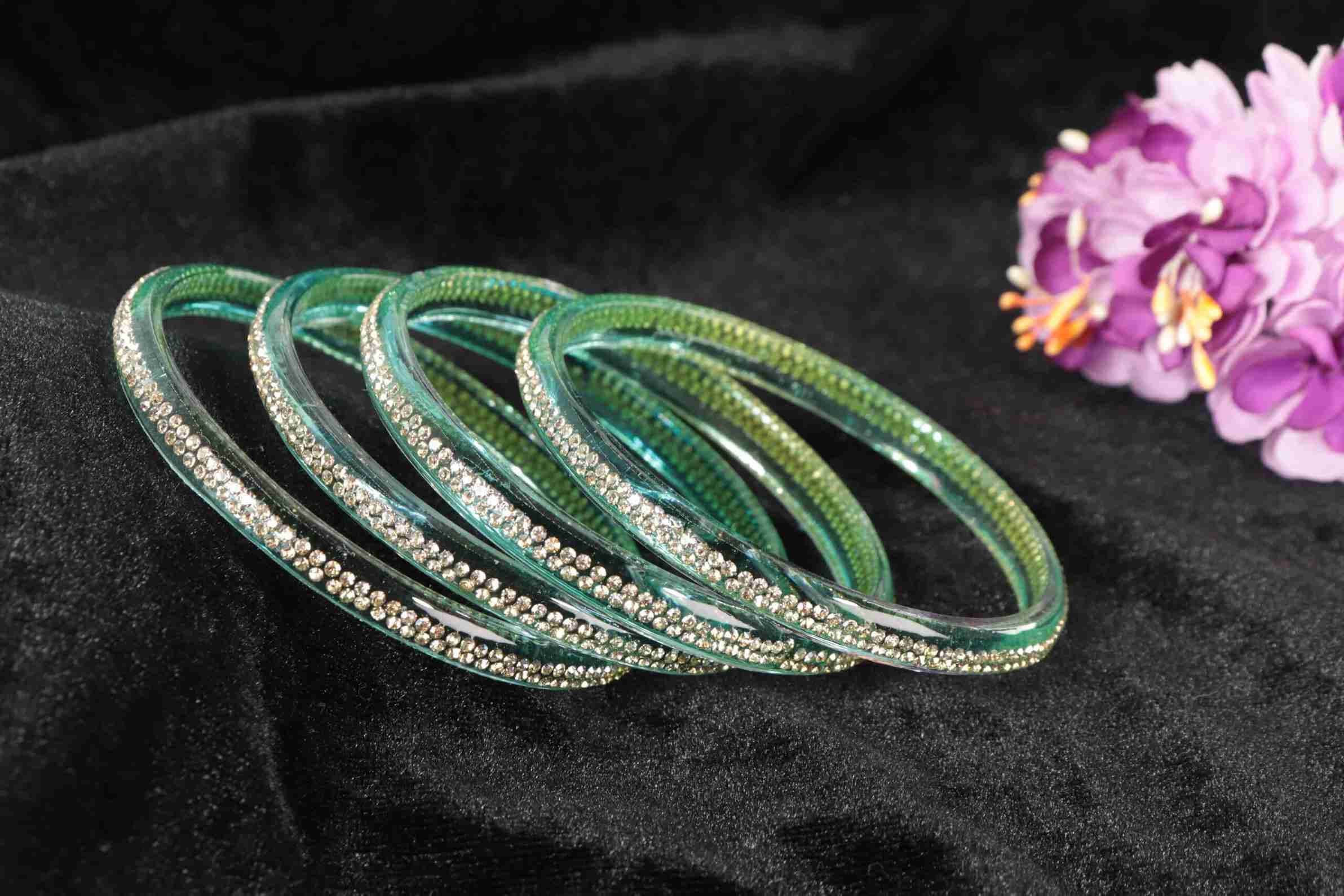 Glass Zircon Bangle Set (Pack of 4)