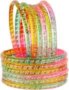✨ STYOLLO Designer Glass Bangles Set For Women & Girls ✨ Make Your Hands Look Beautiful With This Stylish Glass Bangle Set From STYOLLO. These Bangles Are Designed With Golden Zircon Stone. Which Gives A Bright, Rich, And Attractive Look. The Shiny Stones Add Sparkle And Make The Bangles Perfect For Every Special Moment. 💎 Elegant Stone Work: Each Bangle Is Carefully Studded With Golden Zircon Stones In A Neat Design. The Smooth Glass Finish And Shining Stones Give A Classy And Fashionable Touch To Your Outfit. 🌼 Lightweight & Comfortable: These Glass Bangles Are Light In Weight, Easy To Wear, And Comfortable For Daily Use. They Are Gentle On The Skin And Do Not Feel Heavy On The Hands. 🎊 Suitable For All Occasions: Perfect For Weddings, Parties, Festivals, Pooja, Engagements, Office Wear, And Daily Use. These Bangles Look Great With Sarees, Salwar Suits, Lehengas, Kurtis, And Ethnic Dresses. 🎁 Perfect Gift Option: A Lovely Gift Choice For Birthdays, Anniversaries, Festivals, Karva Chauth, Weddings, And Special Occasions. Suitable For Women And Girls Of All Age Groups. Care Tips: Kindly Store Your Bangles & Kada Set In An Airtight Zip-Lock Pouch Or Box. Avoid Exposure To Water, Perfume, And Other Chemicals, Simply Clean Them Gentle With A Soft Dry Cloth. The Brand STYOLLO Sells All Types Of Glass Bangles, Metal Bangles, Acrylic Bangles, Chuda Sets, Kaleera Latkan Sets, Kadas, Bracelets, Women And Girls Traditional To Modern & Korean Jewellery, And Many More. And Please Refer To Our Size Chart To Know Your Hand Size Precisely. To Maintain Longevity