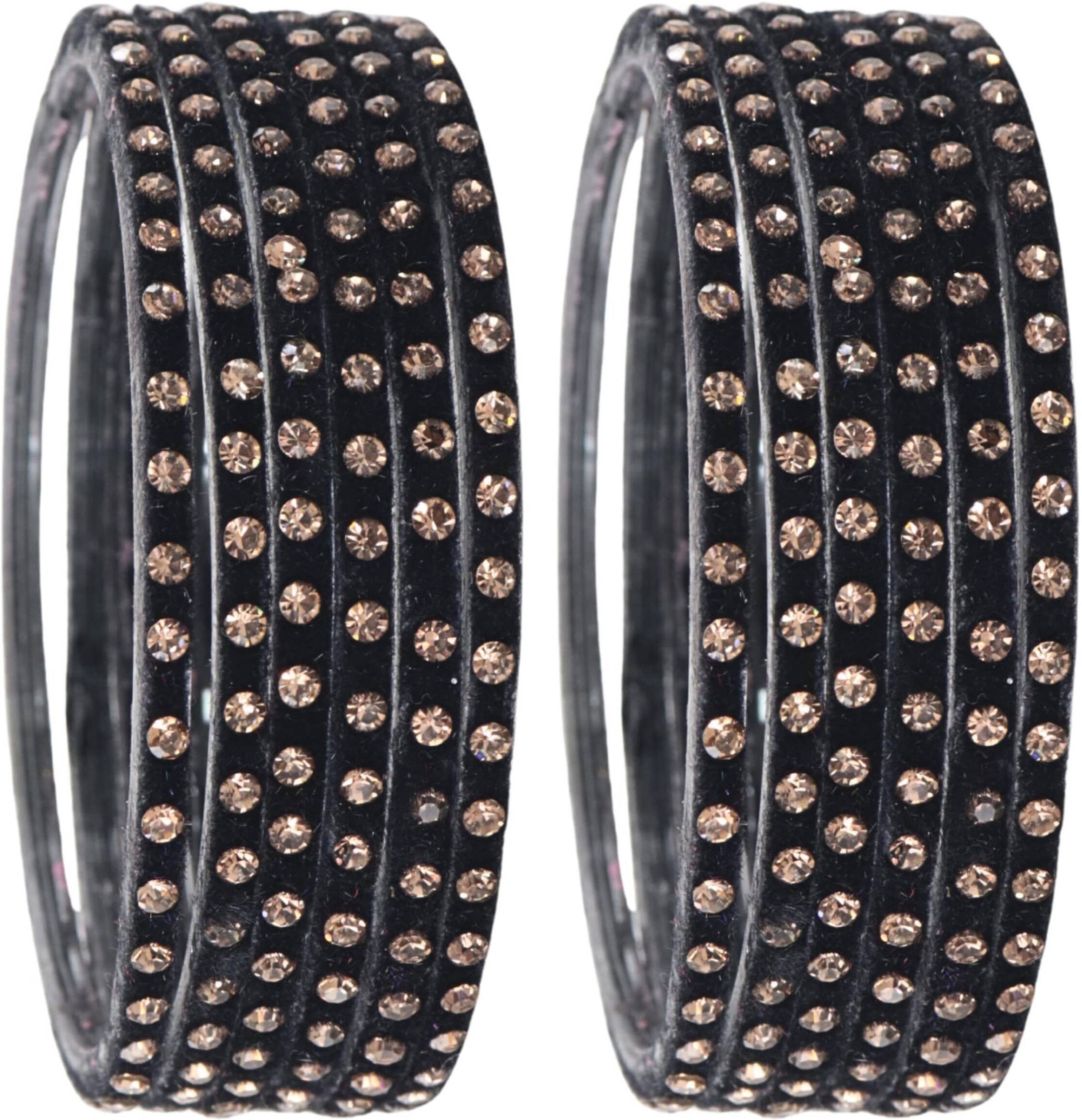 STYOLLO By LAVAZZA Fancy Stylish Velvet Glass Bangles Set With Golden Zircon Gemstone