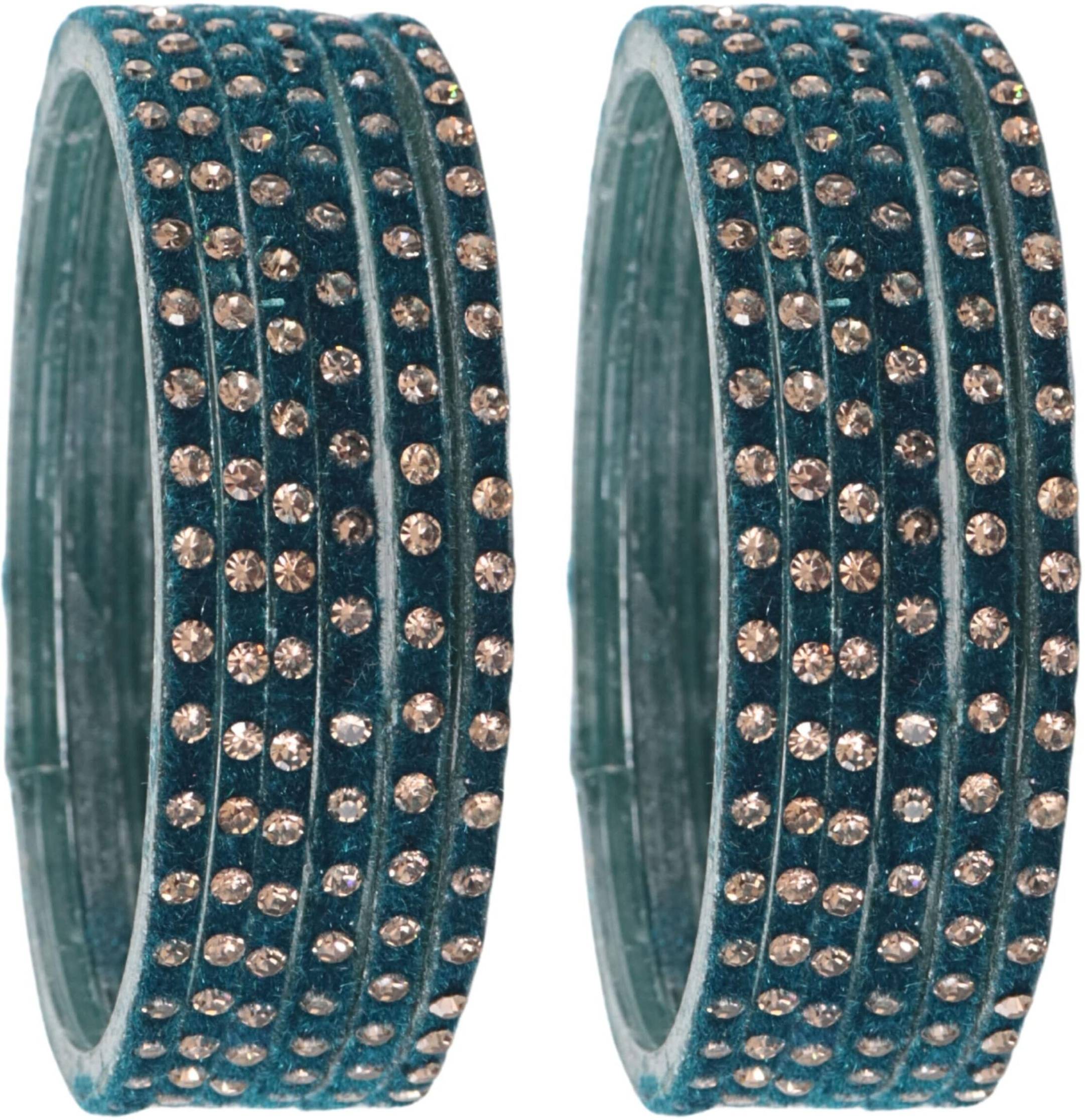STYOLLO by LAVAZZA Premium Glass Velvet Bangles Set For Women And Girls Is A Beautifully Handcrafted Collection Made From High-Quality Transparent Glass, Embellished With Golden Zircon Stones And Delicate Beadwork, Offering A Perfect Blend Of Modern Style And Traditional Charm That Makes It An Ideal Choice For Weddings, Parties, Karva Chauth, Festivals, Anniversaries, Engagements, Special Occasions, And Even Daily Wear, With Vibrant Colors Symbolizing Love, Passion, And New Beginnings To Make You Shine On Your Special Day, Featuring A Premium Finish, Smooth Edges, And Intricate Detailing That Reflect STYOLLO's Expert Craftsmanship, Ensuring Durability, Comfort, And Long-Lasting Shine, While Its Versatile Design Allows It To Complement A Wide Range Of Outfits Including Sarees, Lehengas, Suits, And Modern Ensembles, Making It A Thoughtful Gift For Brides, Bridesmaids, Friends, And Loved Ones; STYOLLO Is Committed To Delivering Timeless Style And Elegance Through Its Wide Collection Of Glass Bangles, Metal Bangles, Acrylic Bangles, Chuda Sets, Kaleera Latkan Sets, Kadas, Bracelets, And Other Jewelry Pieces For Women And Girls, Keeping Tradition Alive While Embracing Contemporary Fashion, And To Maintain The Longevity Of Your Bangle Set, Simply Clean It With A Smooth Cotton Cloth, Avoid Direct Contact With Water, Perfumes, Deodorants, Sunlight, And Harsh Chemicals, And Store Safely In An Airtight Zip-Lock Pouch To Preserve Its Shine And Quality, Making This Bangle Set Not Just An Accessory But A Memorable Addition To Your Jewelry Collection That Elevates Your Overall Look And Creates Lasting Memories Every Time You Wear It