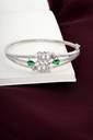 Zigzag Elegance Design: A sleek and modern STYOLLO Bracelet showcasing a structured zigzag Amercian Diamonds with baguette-cut crystals, flanked by vibrant Gree teardrop stones. This piece blends geometric precision with a pop of color for a chic, contemporary look.
