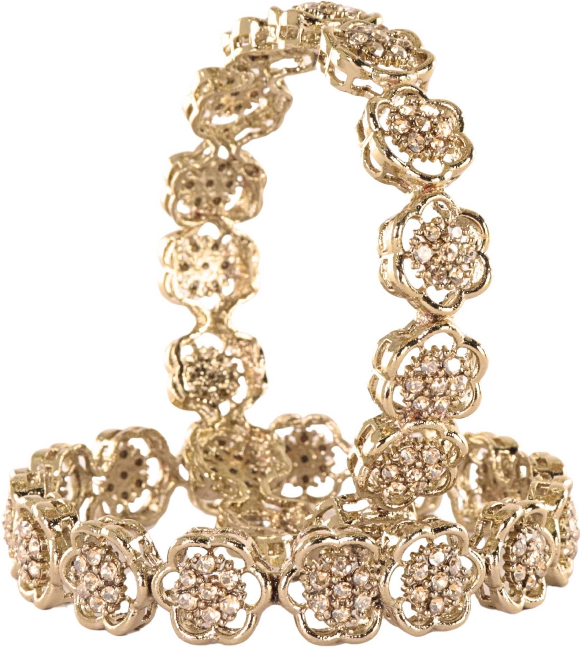 STYOLLO Traditional Stunning Alloy Kada Set For Women & Girls With Zircon Stone & Flower Design