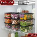 Stysol Plastic Fridge Container - 1100 ml (Pack of 6, Black)