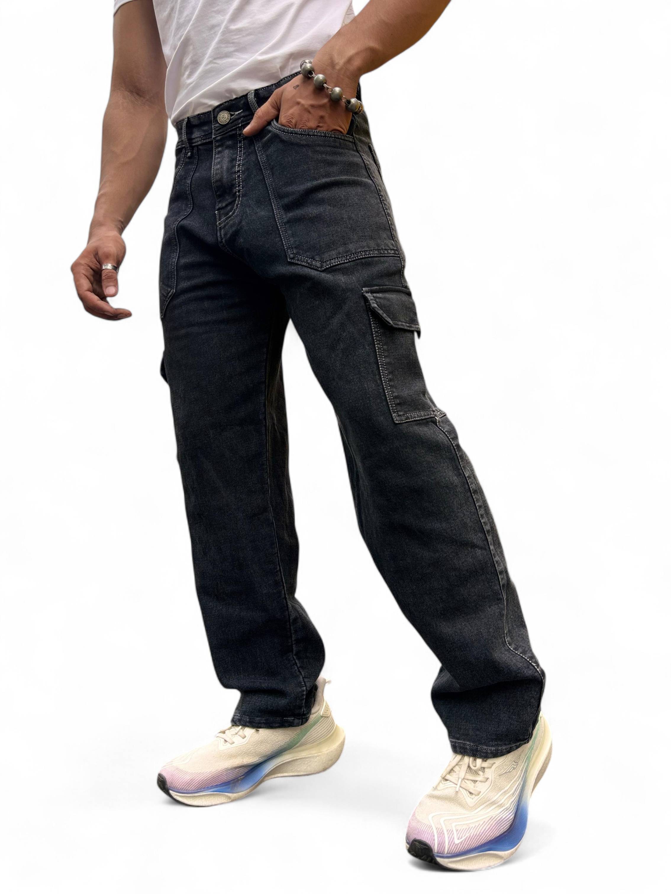 Styzon Fashion presents this slight stretch Denim fabric jeans. These jeans offer a blend of utility and style, featuring a well-thought-out pocket design. The two front curved pockets, each 9 inches in height and 6 inches in Wreath, provide a distinctive and practical touch, while two side pockets measuring 6 inches by 5 inches enhance functionality with additional storage. The two back pockets, also 6 inches by 5 inches, ensure ample room for your essentials. With a standard length of 39-40 inches, these jeans provide a versatile fit. The straight, regular fit combined with a baggy style delivers both comfort and a contemporary cargo look. Crafted from 13.5 oz knetting fabric, they weigh between 600 to 700 grams, offering a durable, heavy-duty feel with a slight stretch for ease of movement. Ideal for everyday wear or rugged activities, these jeans strike a balance between durability, style, and practicality. these six-pocket cargo jeans offer durability, style, and practicality in one.