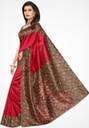 Be the cynosure of all eyes wearing this Red coloured sarees from the house of Suali. Made of Kalamkari Art Silk, this saree will keep you comfortable throughout the day. The fine Work enhances the visual appeal of this saree.