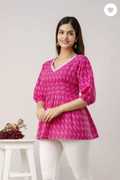 SUBH LAXMI addition to every fashionable women's, to look glamorous and distinct in Women tops. Carved out of fine fabric. The sober summer shade suits every kind of complexion and even suits every purpose like leisure party and outings. This piece is a totally western wear with unique designs.