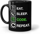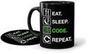 Eat Sleep Code Repeat Printed Black Ceramic Coffee Mug with Coaster