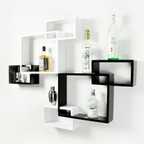 Sublime Arts WALL FLOATING Engineered Wood Display Unit (Finish Color - BLACK ND WHITE, Pre-assembled)