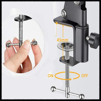 Sporting an easy-position adjustment system, this clamp includes a precision screw mechanism that allows flexible tightening based on the surface thickness. The adjustable positioning screw enables quick installation on tabletops up to 45 mm thick, ensuring a stable hold without wobbling. Its ergonomic design allows smooth operation while setting up microphone stands, tripods, or tablet mounts. This flexible attachment method saves time during equipment changes and keeps the setup tidy.