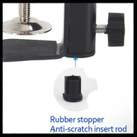 Thanks to its rubber stopper and anti-scratch insert rod, this tripod clamp protects surfaces from marks or damage during use. The soft foam padding at the contact point cushions the clamping area, maintaining a firm grip while preventing abrasions. The anti-scratch design makes it ideal for professional setups, where both equipment safety and workspace protection are essential. The rubber stopper also enhances friction, ensuring this clamp remains securely in place even under continuous pressure.