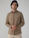 comfort-fit, medium-weight cotton twill shirt, 100% cotton top stitch detailing, double flap pocket, box pleat and recycled horn texture buttons straight hem and cuff for a more outerwear style cargo twill fabric tends to hold its shape well and creases less.