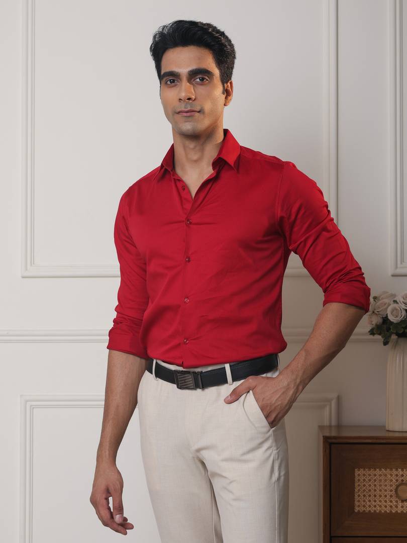 Pair this timeless and stretchable satin shirt with our extra-stretch formal trousers for a classy and comfortable look.