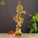 Sudarshan Arts 27CM Krishna Statue Krishna Statue for Home Decor Brass Krishna Idol Flute Krishna Krishna Statue Hindu Marriage gifts Home Entrance Decor Size:- LxWxH- 14x6x27 CM Krishna is one of the most widely revered and most popular of all Indian divinities, worshipped as the eighth incarnation (avatar, or avatara) of the Hindu god Vishnu and also as a supreme god in his own right. Krishna became the focus of numerous bhakti (devotional) cults, which have over the centuries produced a wealth of religious poetry, music, and painting. The basic sources of Krishna’s mythology are the epic Mahabharata and its 5th-century-CE appendix, the Harivamsha, and the Puranas, particularly Books X and XI of the Bhagavata-purana. They relate how Krishna (literally “black,” or “dark as a cloud”) was born into the Yadava clan, the son of Vasudeva and Devaki, who was the sister of Kamsa, the wicked king of Mathura (in modern Uttar Pradesh). Kamsa, hearing a prophecy that he would be destroyed by Devaki’s child, tried to slay her children, but Krishna was smuggled across the Yamuna River to Gokula (or Vraja, modern Gokul), where he was raised by the leader of the cowherds, Nanda, and his wife Yashoda.