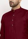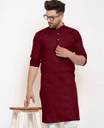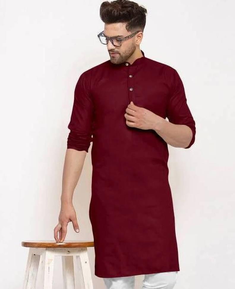 A men's solid kurta is a traditional Indian attire that exudes simplicity and elegance. It is a versatile garment that can be worn for various occasions, ranging from casual gatherings to formal events. The term "solid" refers to the color of the kurta, which is typically a single, uninterrupted shade without any intricate patterns or designs.The solid kurta is typically made from comfortable and breathable fabrics such as cotton, linen, silk, or blends, ensuring a relaxed and airy feel. It is characterized by its straight-cut silhouette, often reaching just above the knee or slightly below, and features a round neckline with a buttoned or slit placket.One of the distinctive features of a solid kurta is its minimalistic design, allowing the focus to remain on the color and fabric texture. This makes it a versatile piece of clothing that can be accessorized in various ways to achieve different looks. Men can pair a solid kurta with contrasting or complementary churidar pants, Aligarh pants, or even straight-cut trousers for a modern twist.Solid kurtas are often chosen in classic colors such as white, beige, black, navy blue, or earthy tones like olive green and maroon. However, the color options are virtually limitless, enabling individuals to select shades that resonate with their personal style and the occasion they are dressing for.For a casual look, a solid kurta can be worn with minimalistic footwear like sandals or slip-ons, along with subtle accessories like a wristwatch or a simple bracelet. On the other hand, to create a more formal appearance, it can be paired with embroidered footwear like mojaris, accessorized with a brooch or a pocket square, and complemented by a well-fitted blazer or Nehru jacket.In summary, a men's solid kurta is a classic and timeless piece of clothing that combines traditional aesthetics with contemporary versatility. Its understated elegance and wide range of styling possibilities make it an essential addition to any gentleman's wardrobe, suitable for both cultural celebrations and modern-day fashion statements.