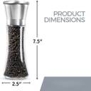 Sugalsu Salt and Pepper Grinder Tall Size Pepper, Herb Shakers Mill Refillable Manual Glass, Steel Traditional Pepper Mill (Silver, Pack of 1)