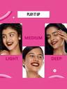 Composition | - Dimethicone, Isododecane, Trimethylsiloxysilicate, Isododecane, Cyclopentasiloxane, Trimethylsiloxysilicate, Disteardimonium Hectorite, Talc, Cyclopentasiloxane (and) Dimethicone Crosspolymer, Cyclopentasiloxane, Dimethicone/ Vinyl Dimethicone Crosspolymer, C12-15 Alkyl Benzoate, Propylene Carbonate, Phenoxyethanol, Ethylhexylglycerin, Dimethicone/ Vinyl Dimethicone Crosspolymer and Silica, Fragrance, Vitamin - E, Approved Colour