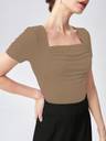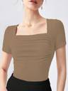Style: Casual, Workwear, Pattern Type: Plain, Neckline: Square Neck, Details: Ruched, Rib-Knit, Gather Detailing, Sleeve Length: Short Sleeve, Sleeve Type: Regular Sleeve, Length: Regular, Fit Type: Slim Fit, Fabric: Medium Stretch, Material: Knitted Fabric, Composition: [Please verify specific % from your item's label, e.g., 95% Polyester, 5% Elastane], Care Instructions: Machine wash cold or professional dry clean, Pockets: No, Sheer: No