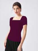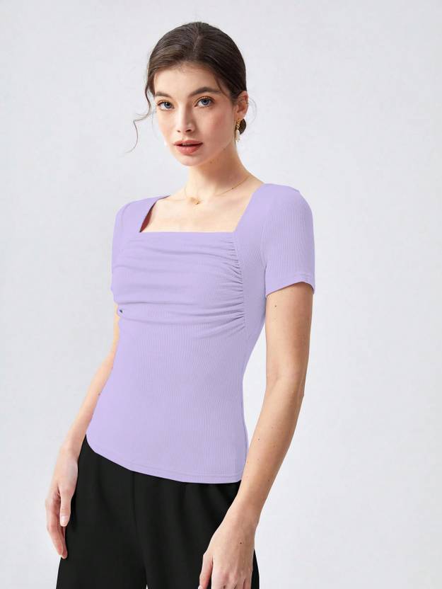 F CORE Casual Flared Sleeves Solid Women Purple Top