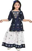 Suhana Kolkata Girls Festive & Party Kurta and Palazzo Set (Dark Blue Pack of 1)