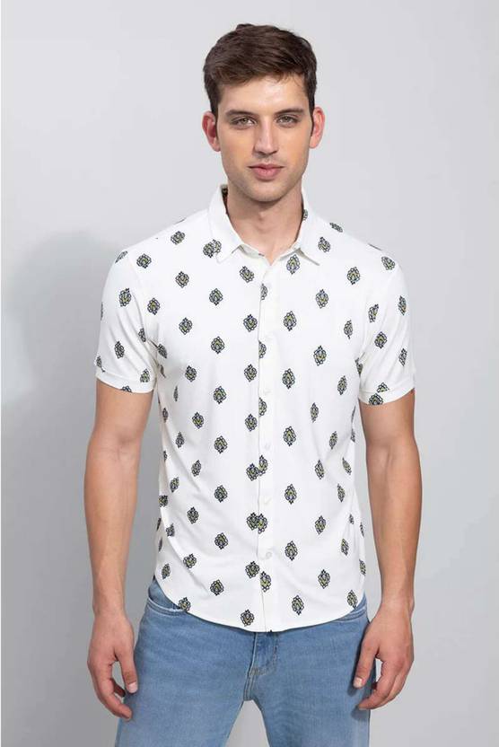 SUIT ICON Men Slim Fit Printed Spread Collar Casual Shirt