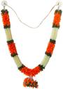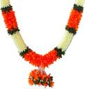 SujArta Garland, Beautiful Jasmine Mala for Photos White, Orange Jasmine Artificial Flower (21 inch, Pack of 1, Garlands)
