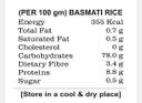 energy 355kcal, Fat 0.7g, Saturated 0.5g, Carbohydrates 78g, Dietary Fiber 3.4g, Protein 8.8g, Sugar 0.5g