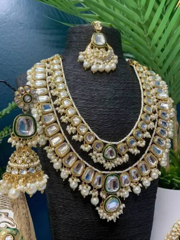 Complete your ensemble with the exquisite Sukhi Gold Jewelry Set, featuring a stunning gold-plated necklace, two pairs of intricately designed earrings, and a beautiful maang tikka. This set is perfect for weddings, festive occasions, and traditional celebrations, offering a perfect blend of elegance and sophistication. Crafted with high-quality materials, the jewelry ensures comfort and durability, making it an essential addition to your collection. Whether you’re dressing up for a grand event or a cultural gathering, the Sukhi Gold Jewelry Set adds a regal charm to your look.