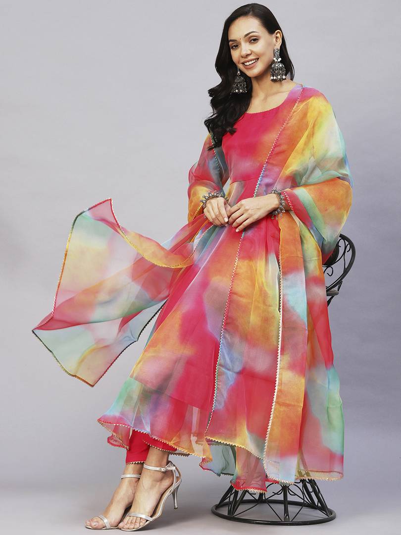 This Printed Organza Gown Dupatta Set exudes elegance and sophistication. The gown features a delicate, lightweight organza fabric with intricate, artistic prints that flow beautifully, offering both a graceful and modern appeal. The ethereal nature of organza gives the gown a soft, airy feel, making it perfect for both formal and semi-formal occasions. Paired with a stunning, complementing dupatta, this set is designed to elevate your style. The dupatta boasts a perfect balance of print and sheer texture, draping gracefully over the gown for an added touch of refinement. Ideal for festive events, weddings, or any occasion where you wish to make a statement, this ensemble effortlessly blends traditional charm with contemporary flair.
