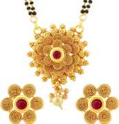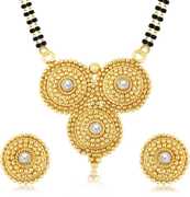 This Sukkhi Royal Gold Plated Mangalsutra Set For Women is made of Alloy. Women love jewellery; specially traditional jewellery adore a women. They wear it on different occasion. They have special importance on ring ceremony, wedding and festive time. They can also wear it on regular basics. Make your moment memorable with this range. This jewel set features a unique one of a kind traditional embellish with antic finish.