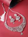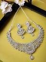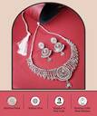 This gorgeous jewellery set includes matching earrings and a necklace engraved with shimmering white AD stones, forming an alluring combination that highlights your beauty. The glossy finish amplifies the set's appeal and lends refinement to any ensemble. With its flawless craftsmanship and timeless beauty, this magnificent set ensures that you will create a lasting impression whether you're attending a party or a special occasion.