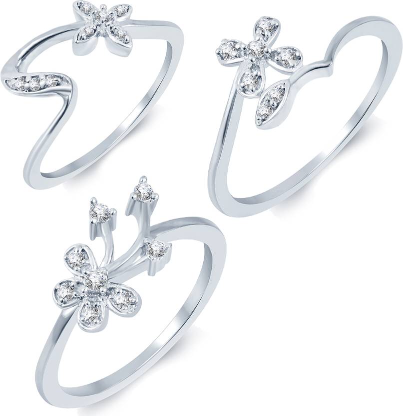 Sukkhi Pleasing Rhodium Plated Cz Set Of 3 Ladies Ring Combo For Women