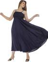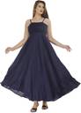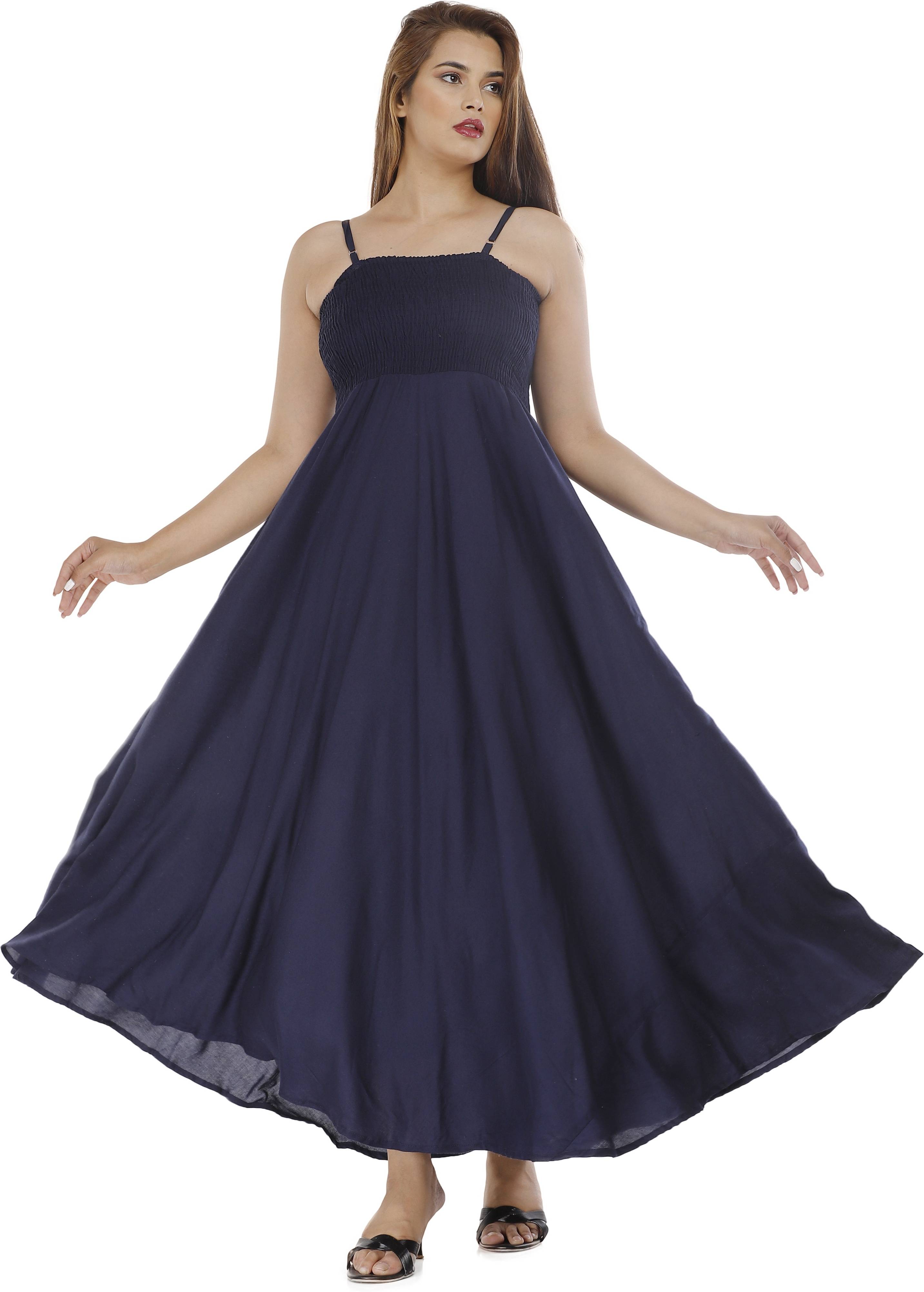 Solid A-line flared Sleeveless Gown has Smoking in its yolk, shoulder straps and Flared Hem. This beautiful dress gives a graceful and stylish look to fetch you compliment . It Is stretchable and comfortable.