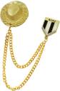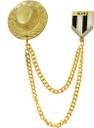 Sullery Mens Suit Rhinestone Crystal Gold Tone Kings Cap Label Pin With Hanging Chain Brooch (Gold)