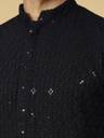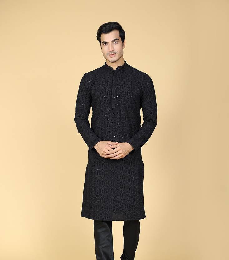 1) The pure cotton material is incredibly soft and feels heavy. 2) The full-body embroidery gives it a very rich and classy look. 3) The moderate (slim) fit adds a stylish touch.