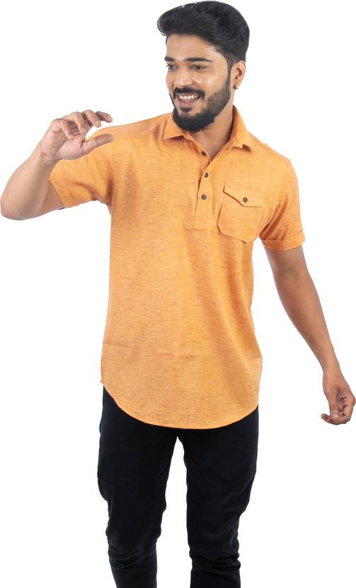 sultan Men Self Design Straight Kurta (Yellow)