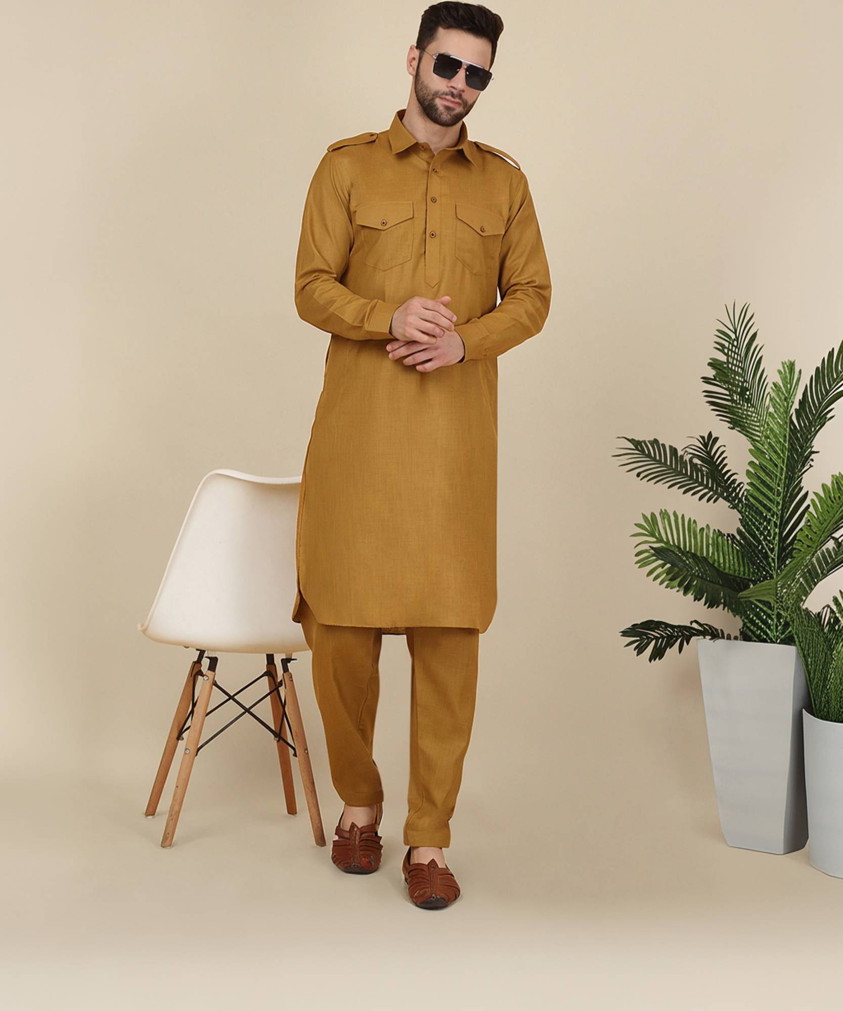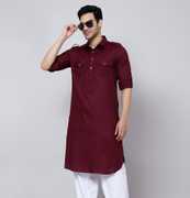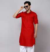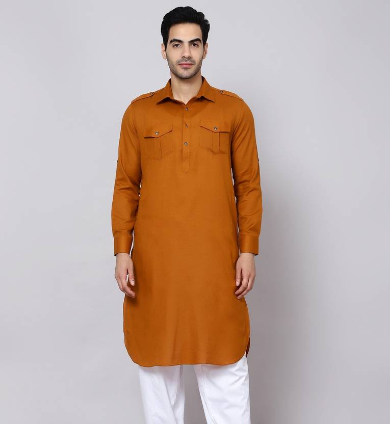 sultan Men Solid Pathani Kurta (Orange)