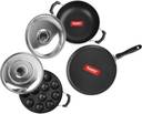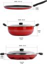 Sumeet Red Crown Non Stick Combo Set of 2.6mm Thick (Dosa Tawa – 26.5cm Dia + Kadhai With Lid – 1.5Ltr capacity- 20cm Dia + Grill Appam Patra With Lid – 23cm Dia) Non-Stick Coated Cookware Set (Aluminium, 5 - Piece)
