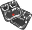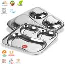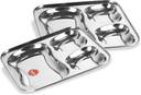 Sumeet Stainless Steel 3 in 1 Pav Bhaji Plate / Compartment Plate 24.5cm Dia - Set of 2 Pcs Sectioned Plate (Pack of 2)