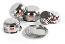 "Cooking is one of the great pleasures of life & the right cookware is an essential ingredient for good cooking that's why Sumeet has brought together one of the most comprehensive ranges of quality cookware. Hence, taking care of all your kitchen needs Sumeet Stainless-Steel Rust-Free Cookware are carefully designed and fabricated with compliance with industry standards. This set of topes (pots) are durable for everyday cooking and preserves nutrition so your recipes turn out beautifully. This light weight Belly shape tope set is designed with flat bottom base that enables it to use on Induction cooktop and GAS Cooktop as well. This Tope distribute heat evenly and quickly throughout the vessel and keeps the food in it warm for a longer duration. This tope come with stainless steel lid which is ideal for faster and better cooking experience. Its compact size makes it easy to store in kitchen cupboards. When not in used smaller container can be stacked inside bigger container saving lot of storage space. With a very fine finish, it Consumes low gas, oil saver, cooks faster and looks great in kitchen. These light weight quality cookware are extremely durable and fuel saver. Dishwasher Safe Exterior Adds Versatility and Functionality. It is easy to clean and maintain, even with everyday usage. Sure, to serve you well for a long time, this item is an ideal pick against your valuable currency. Pack content: 5 topes, 5 lid NO.7 - 12.1 X 12.1 X 5.2(cm), 0.38L, 0.214kg NO.8 - 13.6 X13.6 X 6.2(cm), 0.5L, 0.268kg NO.9 -15 X 15 X 6.8(cm), 0.78L, 0.342kg NO.10 - 16.5 X 16.5 X 7.8(cm), 1.1L, 0.358kg NO.11 - 17.9 X 17.9 X 8.6(cm), 1.4L, 0.44kg "