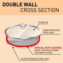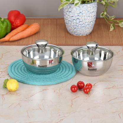 Sumeet Stainless Steel Double Wall Insulated Hot Gravy Pot Casserole with Glass Lid Pack of 2 Thermoware Casserole Set (550 ml)