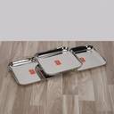 Sumeet Stainless Steel Medium Square Shape Snacks Plate / Breakfast Plate Set-3pcs,20cm Half Plate (Pack of 3)