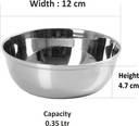 Sumeet Stainless Steel Serving Bowl Stainless Steel Heavy Gauge Bowl / Wati set with Mirror Finish 12cm Dia (350 Ml) - Set of 6pc (Pack of 6, Steel)